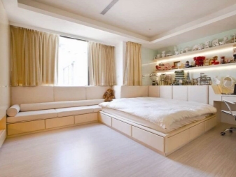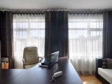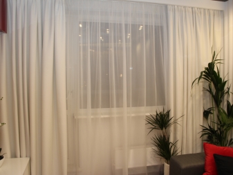 في شقة الاستوديو ، من الضروري اختيار الستائر التي تزيد المساحة بصريًا. لذلك ، بالنسبة للمنزل الصغير الذي يجمع بين غرفة المعيشة وغرفة النوم والمطبخ ، يجب عليك اختيار الستائر بعدة وظائف. الستائر ذات الطبقة المزدوجة المصنوعة من القماش السميك والشفاف مناسبة ، والتي ستتجاوز النافذة لزيادة المساحة.