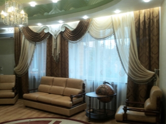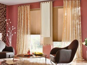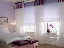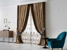 بالإضافة إلى اللمبريكين المحدث ، في أعقاب الشعبية ، فإن قرار التصميم للجمع بين أنواع مختلفة من الستائر ينجرف. لذلك ، يمكنك الجمع بين الستائر الكلاسيكية والستائر الدوارة. ستؤكد الستائر الكلاسيكية المستقيمة على البساطة الصارمة للستائر الدوارة. لا يمكنك الجمع بين الأنماط المختلفة فحسب ، بل يمكنك أيضًا الجمع بين الألوان والأقمشة والقوام المختلفة.
