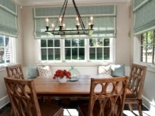 من غير المرغوب فيه تزيين النوافذ في غرفة الطعام أو في المطبخ بستائر ثقيلة أو ستائر على الأرض ؛ ستكون الستائر الدوارة والرومانية والستائر القصيرة ذات صلة. لن تتداخل هذه الأنواع من الستائر مع استخدام الغرفة ، فهي سهلة التنظيف ولا تتداخل مع تغلغل الضوء..