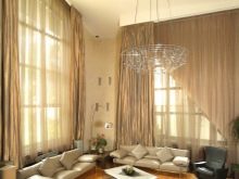 بالنسبة لأولئك الذين يرغبون في زيادة ارتفاع الغرفة ، يقترح المصممون استخدام ستائر رأسية مستقيمة من السقف إلى الأرض. من المهم عدم وجود فجوة بين القماش والأرضية ، فمن الضروري مراعاة أن الستائر يجب أن توضع قليلاً على الأرض ، مما يخلق طيات جميلة. من الأفضل عدم استخدام ستارة صلبة واحدة ، بل استخدام عدة قطع رقيقة من القماش. لن ترفع هذه الستائر السقف لأعلى وتخفض الأرضية فحسب ، بل ستجعل الغرفة أيضًا بصريًا أوسع..