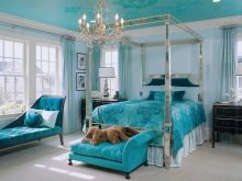 - السماء الزرقاء – يثير هذا الظل ارتباطات بسماء صيفية صافية ، لذا فإن وجود الستائر الزرقاء في الغرفة سيؤدي إلى الهدوء والسكينة ؛
