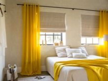 - أصفر في حد ذاته لون نشط ومبهج ومنشط. يمكن أن يبدد الجو العام في الغرفة ويعطي جوًا إيجابيًا. الستائر الصفراء مثالية للغرف ذات النوافذ التي تواجه الجانب الشمالي ، فهي تضيء قلة الضوء. لكن لا ينصح باستخدامه في غرفة النوم ، لأن اللون يؤثر على الحالة العاطفية للشخص ويمكن أن يتسبب في عواقب غير سارة ؛