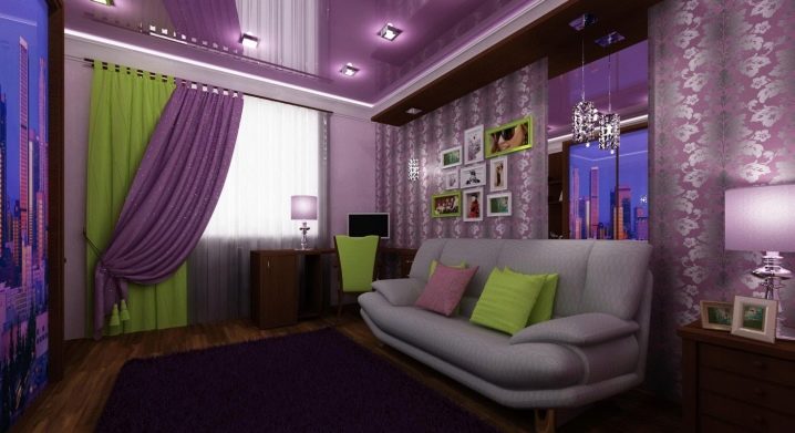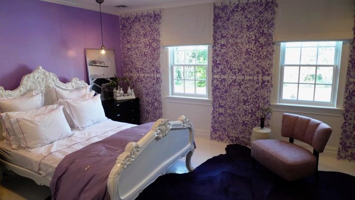 يمكن أن تكون منتجات المنسوجات للنوافذ أحادية اللون ولها أنماط ، وخلفية أرجواني تسمح باستخدام كلا الخيارين. يمكن أن تكون الزخرفة على النحو التالي: تجريد ، طباعة مشرقة مع لعبة من الألوان ، خطوط مختلفة ، حروف أحادية ، أزهار. يعتمد اختيار النمط فقط على تفضيلات ذوق صاحب المنزل..