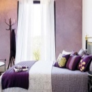 - في غرفة الترفيه يؤدي لون الحوائط إحدى أهم الوظائف ، وهي المساحة الشخصية للشخص ، لذلك يجب أن تكون مريحة ودافئة قدر الإمكان حتى يتمكن من العيش والنوم فيها بسهولة. بالنسبة لغرفة النوم باللون الخزامى أو البنفسجي الفاتح ، على سبيل المثال ، ستكون الستائر البيضاء مناسبة. سيؤدي اللون المحايد إلى تخفيف النغمة الأساسية للجدران ، بحيث يصبح الجو في الغرفة هادئًا ومتناسقًا. الأبيض مع أرجواني هو ثنائي النخبة من لونين. أيضًا ، بالنسبة لمساحة أرجواني ، تعتبر ستائر الخوخ والزيتون والوردي الفاتح والأخضر الفاتح مثالية ، خاصة إذا كانت الغرفة مظلمة.