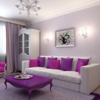 - في بيئة أرجوانية ، تعتبر الستائر الأرجوانية من المحرمات. بصريًا ، سوف يقللون من الغرفة ، ويشبعون الغرفة بلون واحد ، ويحدثون اختلالًا في التوازن ؛