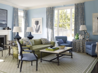يتم استخدام درجات ألوان متوسطة مختلفة من اللون الأزرق في تصميم جميع الأنماط تقريبًا. هذه هي الكلاسيكيات الأنيقة والديكورات الداخلية الأنيقة الرومانسية والحديثة. ومع ذلك ، من أجل أن يكون الجو متناغمًا ومريحًا ، من المهم الانتباه ليس فقط إلى اختيار اللون الرئيسي للغرفة., ولكن أيضًا ظلال الملحقات المدمجة معها. هذا ينطبق بشكل خاص على الستائر..