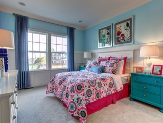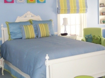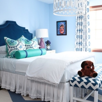 بالإضافة إلى ذلك ، بالنسبة للكثيرين ، يرتبط اللون الأزرق بالحرية والشعور بالطيران. يجعل الداخل أخف وزنا ، ويجلب الشعور بالنظافة والانتعاش والبرودة في الغرفة..