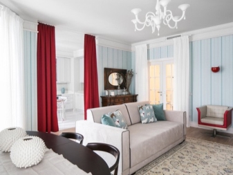 في التصميمات الداخلية الحديثة ، يُسمح بأي ألوان مناسبة (بما في ذلك الخيارات الساطعة) والتباينات الجريئة والأنسجة والأنماط المختلفة.