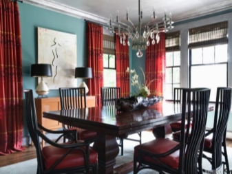 الستائر الحمراء هي قرار جريء. يمكن أن تكون هذه ستائر عادية أو خيارًا بطباعة حمراء. سوف يشحنك اللون الديناميكي الساطع بالطاقة ، ويهيئك للعمل. يمكنك الاستمرار في موضوع اللون في الملحقات الأخرى ، دون أن تنسى الإحساس بالتناسب..