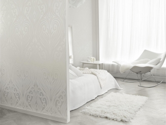 يعطي اللون الأبيض لورق الحائط مساحة كبيرة للخيال. تسمح زخرفة الجدار هذه باستخدام المنسوجات جيدة التهوية والكثيفة.. تخلق المجموعات الأكثر أناقة ونجاحًا مع الزخارف البيضاء الظلال التالية: