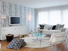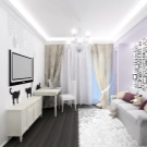 إذا اخترت اللون الأبيض باعتباره اللون الرئيسي في الغرفة ، فهذا لا يعني على الإطلاق أنك الآن بحاجة بالتأكيد إلى تحديد لهجات مشرقة. ستبدو غرفة المعيشة المزينة باللون الأبيض ، بما في ذلك ورق الحائط والستائر ، متطورة وفاخرة. الأبيض النقي يبدو باهظ الثمن دائمًا.