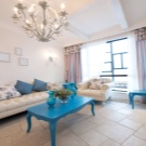 - يجسد اللون الأزرق النقاء والنضارة السماوية ، ويبدو أنه يملأ الفراغ بالهواء. هذا مزيج جيد جدًا لغرفة النوم أو حتى غرفة المعيشة..