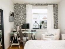 - إذا كانت الغرفة لا يمكن أن تفتخر بمساحة كبيرة ، فاختر خلفية فاتحة مع ستائر خفيفة. تخفي الظلال الداكنة المساحة ، والستائر الغنية بالألوان تجعل مساحة النافذة أقرب بصريًا.
