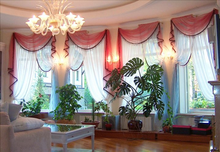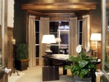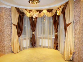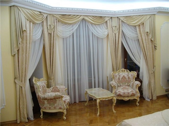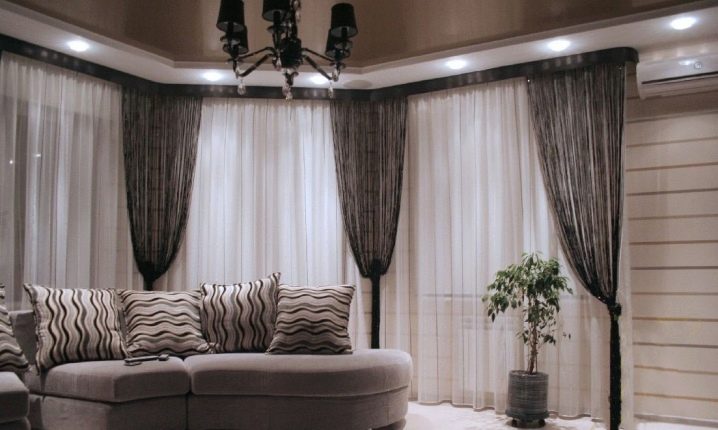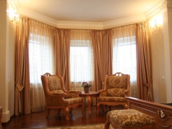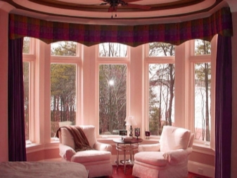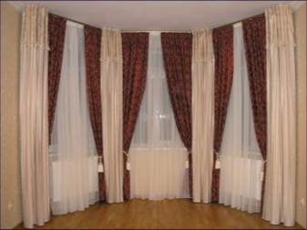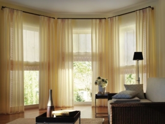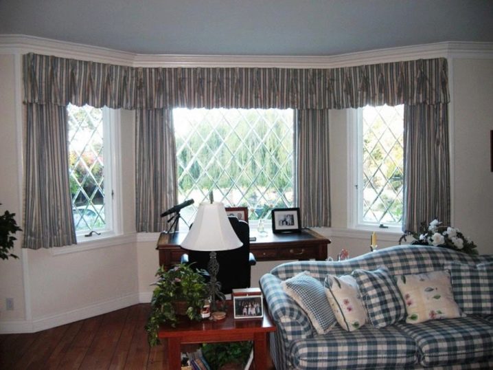 جميع الستائر ، بغض النظر عما إذا كنت تختارها لنافذة كبيرة أو عادية ، متصلة بالكورنيش. نظرًا لحقيقة أن نافذة الخليج لها شكل غير قياسي إلى حد ما ، فمن الضروري تحديد كورنيش مناسب. يجب أن تتبع منحنيات النافذة وملائمة. في بعض الحالات ، عند تزيين نافذة كبيرة حديثة ، يجب عليك حتى صنع أفاريز حسب الطلب..