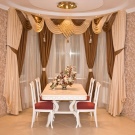 لإكمال التصميم الداخلي بأسلوب كلاسيكي ، يتم تعليق الستائر متعددة المستويات على النوافذ أو اجمع بين ستائر التعتيم والتول الفاتح. من الأعلى ، يمكن تزيين هذه الستائر بلمبريكين. هذه تفاصيل مفيدة للغاية ، لأنه من خلال استبدال واحدة فقط من هذه التفاصيل ، ستغير الديكور في الغرفة إلى ديكور غير رسمي ، أو العكس ، بشكل رسمي.