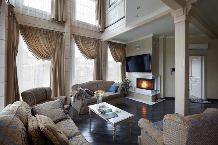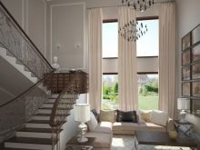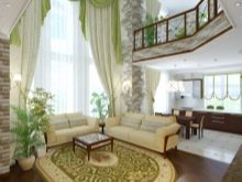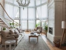 عند اختيار نمط ونموذج للستائر للمنزل الريفي ، فأنت بحاجة إلى التركيز على ارتفاع الجدران.