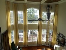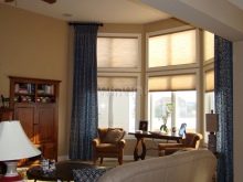 الارتفاع الشديد ، مثل 7-10 أمتار ، هو سبب للنظر في ترتيب من مستويين ، عندما يظل الجزء العلوي من الستائر ثابتًا والجزء السفلي قابل للتعديل.
