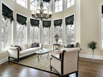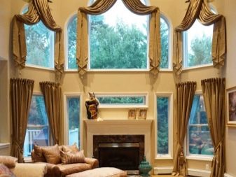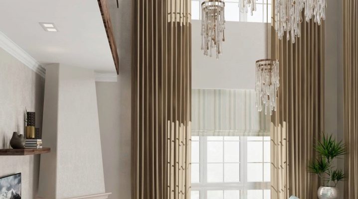 يطور المصممون مجموعة لا حصر لها من خيارات الستائر لغرف الإضاءة المزدوجة. يجلب الجميع رؤيتهم الخاصة وفهمهم للفضاء والملمس ، لذلك لا توجد شرائع صارمة.
