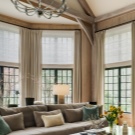 يتيح لك تزيين فتحات النوافذ هذه الجمع بين الستائر بالحجم الكامل والستائر الشفافة والتول عديمة الوزن.