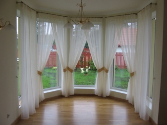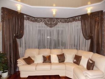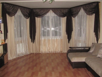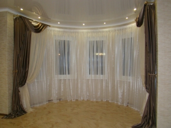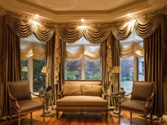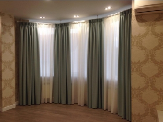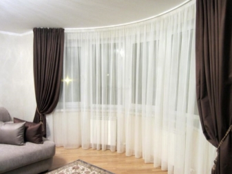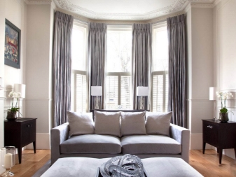بالإضافة إلى اختيار نوع الستائر والمواد الخاصة بها ، يجب أيضًا مراعاة نوع النافذة المزخرفة نفسها. يتم تثبيت نافذة كبيرة في فصوص الجدار الخارجي ، على الرغم من إمكانية تجهيز هذه الإسقاطات بأبواب الشرفة. ستؤدي هذه الخطوة إلى زيادة المساحة المفيدة في المنزل بشكل كبير ، وزيادة إضاءة منطقة الضيف..