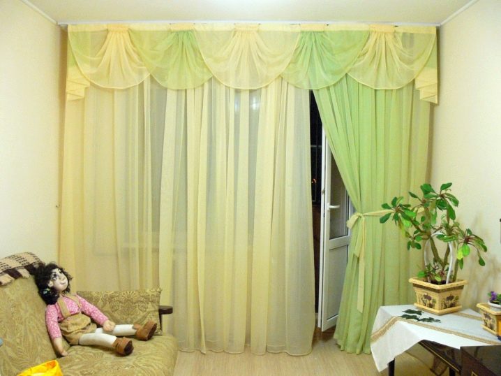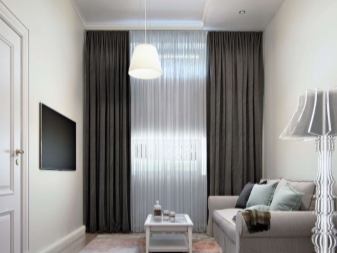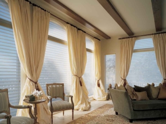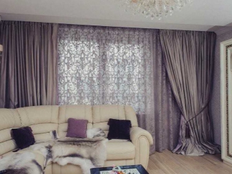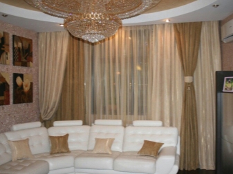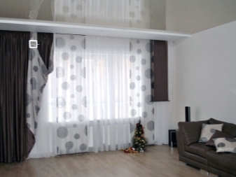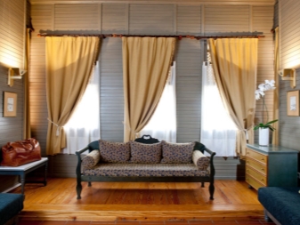 من النادر وجود فتحة واحدة فقط في غرفة المعيشة. إذا كان هناك العديد منها ، فيمكن استخدام الستائر متطابقة تمامًا ومتكررة من خلال واحدة ، والأكثر تنوعًا في المظهر (تخضع للتماثل). من المهم جدًا استخدام نوع متجانس من المادة..