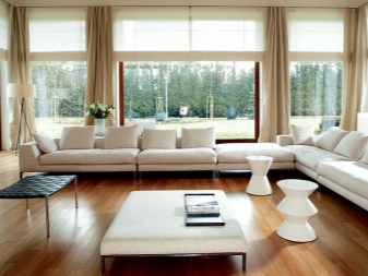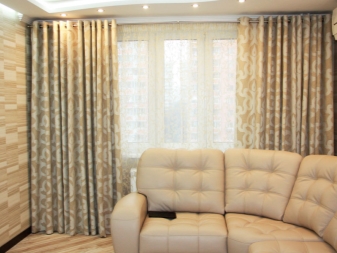 تم تصميم نافذة كبيرة (نوع بانورامي) بحيث تتوافق الستائر ليس فقط مع نمط غرفة المعيشة ، ولكن أيضًا مع المنظر الذي يفتح خارج النافذة. لذلك ، يتم الجمع بين المناظر الطبيعية الصناعية بشكل جيد مع بساطتها ودور علوي بالداخل ، وإذا رأيت مبنى سكنيًا ، وملعبًا ، فأنت بحاجة إلى اختيار كلاسيكي.