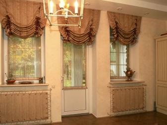 سيكون عليك استخدام الكثير من الأمور أو الخروج بحركات أصلية. ستكون الستائر اليابانية والرومانية التي سبق ذكرها أفضل طريقة للخروج. إذا كنت ترغب في التوافق الأسلوبي الجيد ، يمكنك استخدام أصناف فرنسية وإنجليزية ، مزودة بمقابض و lambrequins.