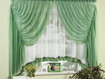 لا يمكن أن يكون التعليق المستطيل الكلاسيكي أقل زخرفًا إذا كنت تستخدم ستائر بلونين (على سبيل المثال ، أخضر في المقدمة ، وأبيض أقرب إلى النافذة نفسها). في الوقت نفسه ، يُنصح بعدم جعل هذه الأجزاء متطابقة بصريًا ، لأن مثل هذه الخطوة ستحسن بشكل كبير من الإدراك الداخلي..