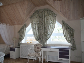 في العلية ، كقاعدة عامة ، تكون النافذة ضيقة أو مثلثة. لذلك ، هناك حاجة لشراء ستائر رول غير قياسية أو ستائر قصيرة مصممة خصيصًا..