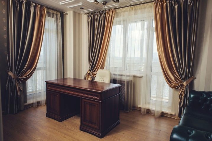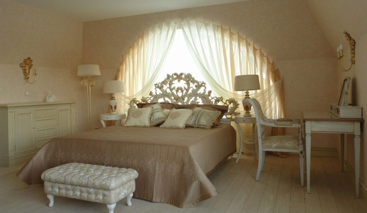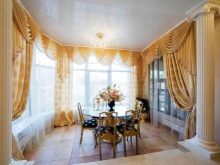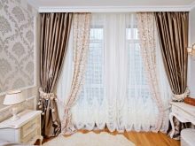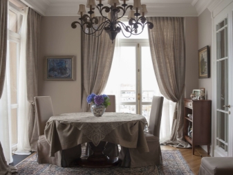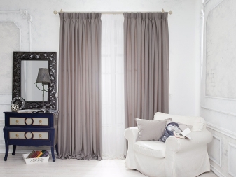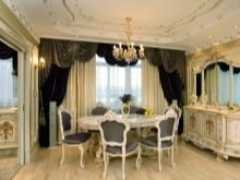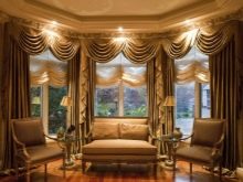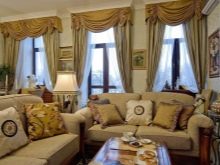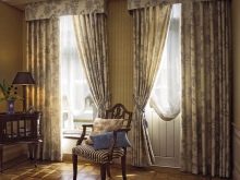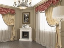 يسمح أي نوع من النوافذ والغرف بأسلوب كلاسيكي. الفتحات المقوسة مؤطرة بستائر مع لامبريكين وشرابات. ترحب النوافذ المثلثة بالتركيبات المفردة من الحرير الشفاف. تتراوح ألوان الستائر من درجات لون اللحم إلى اللون البني الغامق.