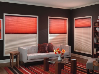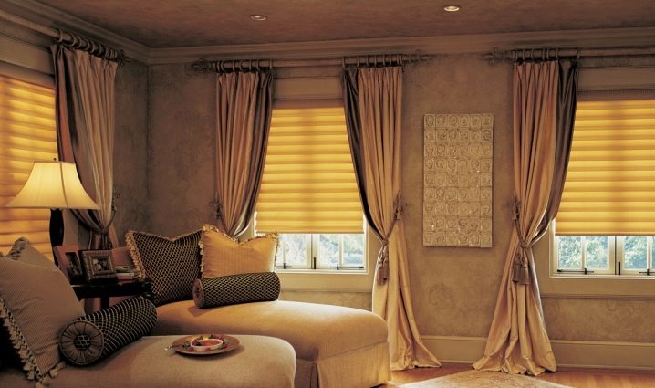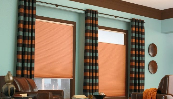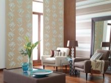 يمكن استكمال الستائر الموجودة في القاعة بستائر مطوية بحيث لا ينخفض مستوى الراحة في الغرفة في الأيام المشمسة. في حالة الدمج مع الستائر الأخرى ، يجدر إعطاء الأفضلية للنماذج العادية المطوية حتى لا تفرط في تحميل لوحة الألوان..