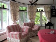 في تصميم مثل هذه الستائر ، يمكنك العثور على أنماط مختلفة منمقة على الطريقة الإنجليزية: قفص اسكتلندي ، وخطوط عمودية ، وزهور صغيرة على قماش chintz وورود ضخمة.