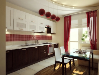 - تتيح لك مساحة المطبخ تجربة طول الستائر. ضكلا الخيارين الطويل والقصير مناسبان هنا. من حيث الألوان والأنماط ، لا توجد أيضًا قيود خاصة ، ويتم الاختيار في إطار النمط المختار.