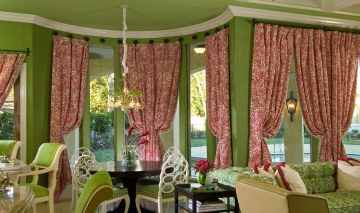 يتم دمج الستائر الملونة المزخرفة بلا شك مع العناصر الداخلية الأخرى: ورق الحائط ، والمفارش ، والأثاث. بدون هذا ، سيكون الأسلوب غير معروف ولا طعم له..