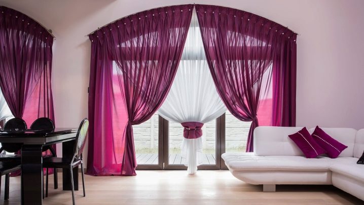 يتم تشييد هذه الهياكل في مساحة نافذة كبيرة. يتم سحب الستائر قطريًا إلى الكورنيش ، وتشكيل نصف قوس. الحلقات مثبتة على الجانب السيئ من الستائر. من خلالها يتم ربط الحبال.