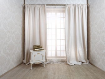 غالبًا ما تكون الستائر مصنوعة من القطن أو الكتان. تبدو هذه الأقمشة ذات الألوان الرقيقة غير واضحة ، بل زاهدة إلى حد ما. بالنسبة للغرف المحترقة ، يُسمح باستخدام الستائر الرأسية الخفيفة. تزين الأقمشة أحادية اللون الكثيفة ذات الظلال الدافئة غير البراقة الغرفة نصف الفارغة في الشقة.