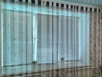 حتى لا تتداخل الخيوط أثناء التنظيف ، يمكن إزالتها بسهولة من جانب واحد وتثبيتها إما بسرطان خاص أو بحبل مصنوع من خرز صغير. يخلق التصميم صورة بوهيمية في الداخل ، لا تنطبق فقط على النوافذ ، ولكن أيضًا على المداخل. ستائر حبلية تحدد المساحة وأحيانًا تحل محل التول الشفاف.