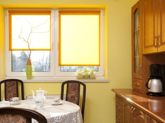 التركيبة تناسب المطبخ تمامًا. الستائر الرومانية ، بالكاد تلامس عتبة النافذة ، تفتح الجزء السفلي من النافذة. إنها لا تشوش المساحة ، ولكنها في نفس الوقت تجعلها فعالة للغاية. تسمح الأنماط والزخارف ومجموعات الألوان باستخدام الستائر في أنماط داخلية مختلفة.
