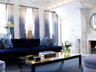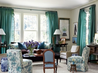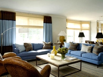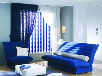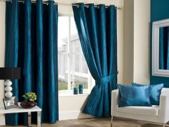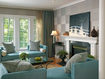 النغمات الفاتحة من الطيف البارد “تباعد” الجدران بصريًا وتزيد من حجمها ، لكن الألوان المشبعة الداكنة ، على العكس من ذلك ، تقللها. لهذا السبب إذا كانت لديك الفرصة لزيادة غرفة المعيشة قليلاً ، فمن الأفضل اختيار الستائر الزرقاء أو الفيروزية.