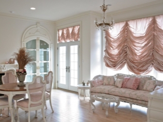 - النمط الروماني. يتم اختيار المواد بشكل أساسي بألوان ذهبية. عادة ما يتم تزيين الستائر أيضًا بأطراف غنية وحبال كبيرة مضفرة..