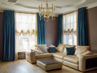 غرفة المعيشة هي الغرفة التي يمكنك من خلالها استخدام أي خيارات ممكنة لتزيين نافذة مفتوحة. ولكن إذا كانت النوافذ موجودة على الجانب حيث يوجد الكثير من أشعة الشمس ، فمن الأفضل أن تختار المواد الأكثر مقاومة للبهتان. يتم اختيار الأقمشة دائمًا حسب نوع المنتج المستخدم..