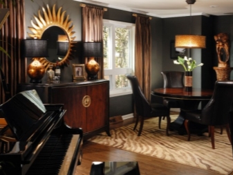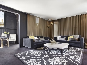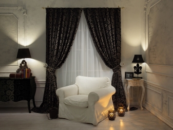 يمكنك استخدام لون أو قماش أو نقش أو نقش واحد ليس فقط للستائر ، ولكن أيضًا للوسائد على الأريكة أو المنسوجات الأخرى. الستائر السوداء في الديكور ليست زاحفة كما تبدو في بعض الأحيان. مع المجموعة الصحيحة ، تبدو المنتجات السوداء أنيقة للغاية..