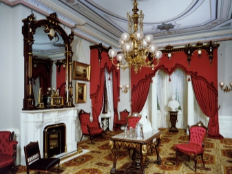 - نمط الإمبراطورية. يتم شراء القماش فقط بألوان فاتحة. يتم الترحيب بالهدوء في هذه التصميمات الداخلية – يمكن تحقيق ذلك بمساعدة الستائر الثقيلة والفاخرة.