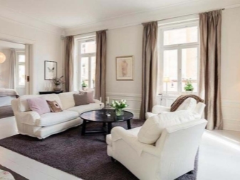 سيكون من السخف تزيين غرفة المعيشة التي لا تتلقى الكثير من الضوء بستائر سميكة ذات ألوان داكنة جدًا. في هذه الحالة ، من الأفضل شراء ستائر خفيفة شفافة..
