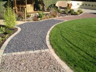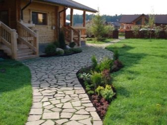 مسارات حصوية شائعة يمكن تخطيطها حتى في شكل نهر يتدفق عبر موقعك. يمكنك أيضًا إنشاء ممر من المواد الطبيعية ، مثل قطع الخشب. هذا الحل جيد لأن هذه المادة صديقة للبيئة. بالإضافة إلى ذلك ، عند المشي على طول هذا المسار ، ستشعر كما لو كنت في نزهة في الغابة..