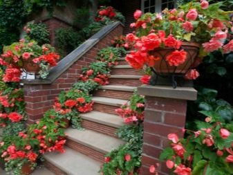 - زهور. على سبيل المثال ، في منطقة الاستجمام ، يمكنك ترتيب حديقة اصطناعية باستخدام المزهريات ذات الزهور المجعدة. ستبدو البغونيات الفاخرة والبنفسج والزهور الفخمة رائعة ، والتي يمكن وضعها على جوانب الشرفة الأرضية أو تعليقها في سلالك المنسوجة.