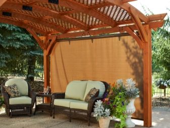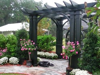 - برجولا. لا يستخدم جميع المالكين العريشة على مواقعهم. ومع ذلك ، فهو ليس مجرد ديكور جميل ، ولكنه أيضًا تفاصيل خارجية عملية. سوف تدعم العريشة نباتات التسلق وتحميها من أشعة الشمس الحارقة.