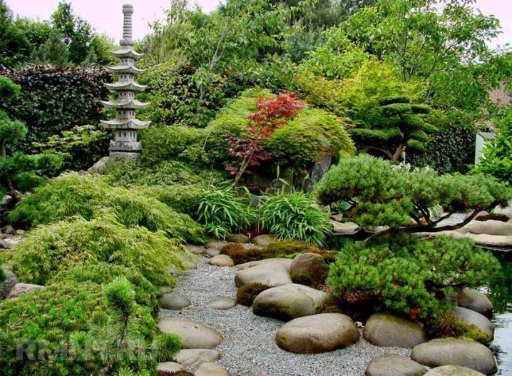 إذا كنت مهتمًا بالثقافة اليابانية ، فيمكن تحويل الكوخ الصيفي إلى منزل للساموراي. سيرشدك مسار الحصى الواسع المبطن بأحجار مستديرة كبيرة إلى حلمك. أراضي الفناء مليئة بالمساحات الخضراء: خشب البقس ، العرعر والشجيرات الأخرى. سيجعلك ذلك تشعر بالانسجام مع الطبيعة. أ على خلفية الخضرة ، يمكنك وضع عنصر زخرفي بأسلوب شرقي, على سبيل المثال ، برج جميل يمكن ملاحظته من بعيد.