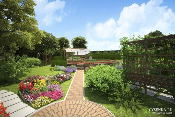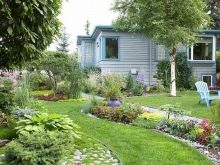يمكن زراعة أشجار الفاكهة بالقرب من المنزل. سوف يسعدونك في أوقات مختلفة من العام: في الربيع – بزهورهم ، في الصيف والخريف – مع حصاد غني. والياسمين ، بسط الفروع عبر النافذة ، سوف يوقظك في الصباح برائحته. في وسط الموقع يمكنك وضع طاولة خشبية ومقعد. كل هذا يبدو جميلًا محاطًا بأسرة زهور ملونة مليئة بالسراخس والأجراس.