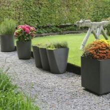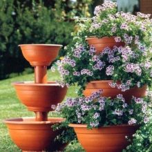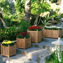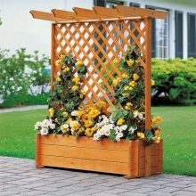 ستبدو الأواني الخشبية أيضًا أصلية وغير عادية في حديقتك. المنتجات الخشبية دائمًا في انسجام تام مع النباتات. في مثل هذا الكائن ، يمكنك وضع وعاء بأمان مع أزهار عادية تشبه الكروم..